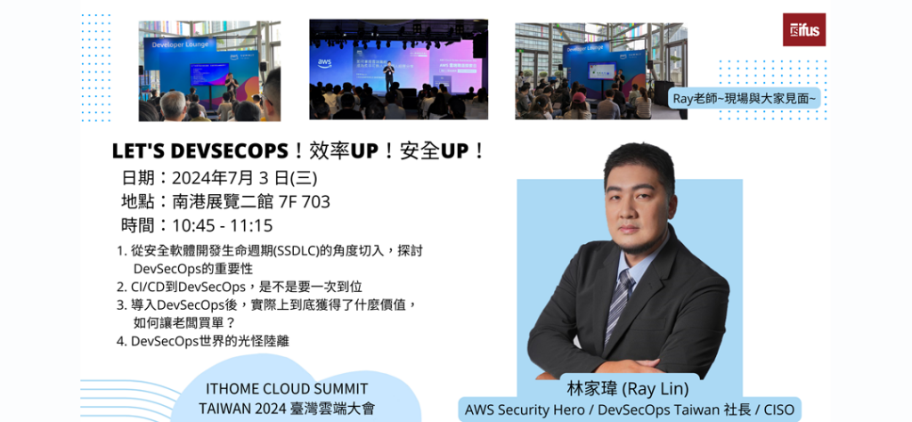 2024 iThome臺灣雲端大會,來了~ 這次很榮幸,DevSecOps社長 RAY獲選為2024 iTho